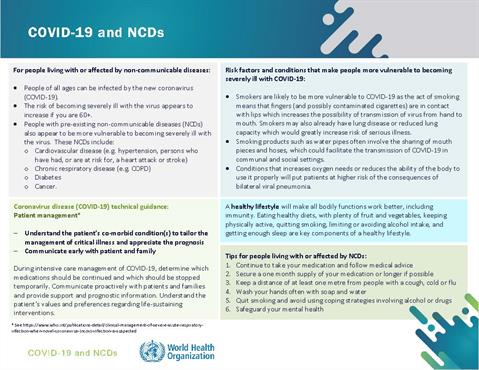 Covid 19 A Call To Address Non Communicable Diseases
